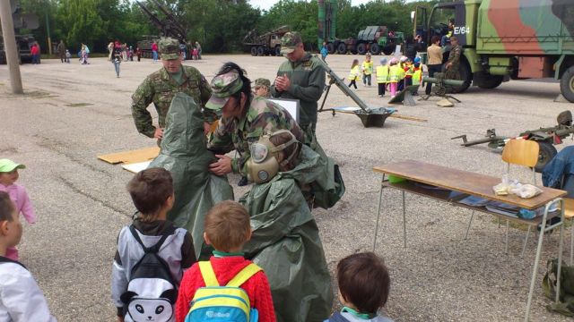 Bojové obrnené vozidlá a „rakeťácka“ technika boli k nahliadnutiu z vonka i z vnútra. Deti si mohli pochytať, poťažkať či vyskúšať prostriedky spojovacej techniky, chemickej ochrany, samopal či guľomet, protilietadlovú raketu IGLA i nosný modulárny systém. Tí odvážnejší si aj zastrieľali z airsoftových zbraní alebo sa povozili na terénnych vozidlách. Program bol spestrený dynamickou ukážkou prepadu vozidla a zneškodnenia nepriateľa, ktoré pripravili vojaci 12. mechanizovaného práporu, a ukážkou výcviku vojenských psov. Atmosféru dopĺňal farebný dym a výbuchy signalizačnej munície.