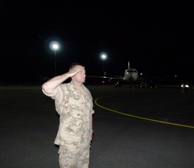 Na letisku Sliač ich privítal 2. zástupca náčelníka generálneho štábu OS SR generálporučík Jaroslav Vývlek spolu s veliteľom pozemných síl OS SR generálmajorom Jánom Salaganičom.