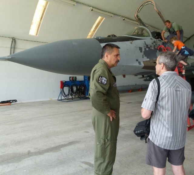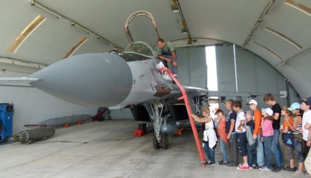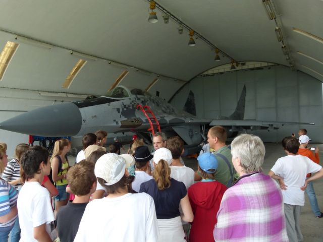 Nadzvukové bojové stíhacie lietadlo MiG- 29 a cvičné bojové lietadlo L- 39 pripravili technici leteckej základne na ukážku pre návštevníkov zvonku aj zvnútra. Na mnohé otázky odborne odpovedal aj zastupujúci veliteľ základe podplukovník Martin Hronec.