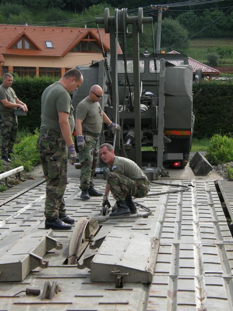 Prekládku ženijného mosta uskutočnilo družstvo mostných automobilov pod velením veliaceho poddôstojníka ženijno-mostnej čaty rotmajstra Jána Spišáka za pomoci mostného automobilu T813/AM-50 a štyroch príslušníkov družstva: desiatnika Blažeja Lojana, slobodníka Radovana Andrejova, slobodníka Mariána Pastirika a vojaka Jozefa Motyku. Celú zostavu doplnila zdravotníčka čatárka Katarína Domaracká, keďže prítomnosť zdravotníka je nutná pri všetkých typoch ženijných prác.