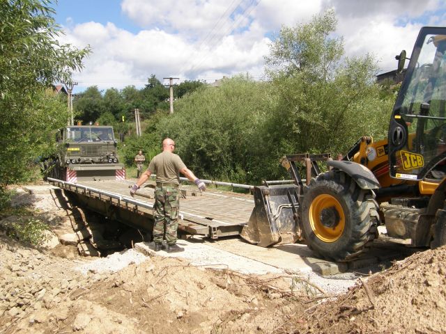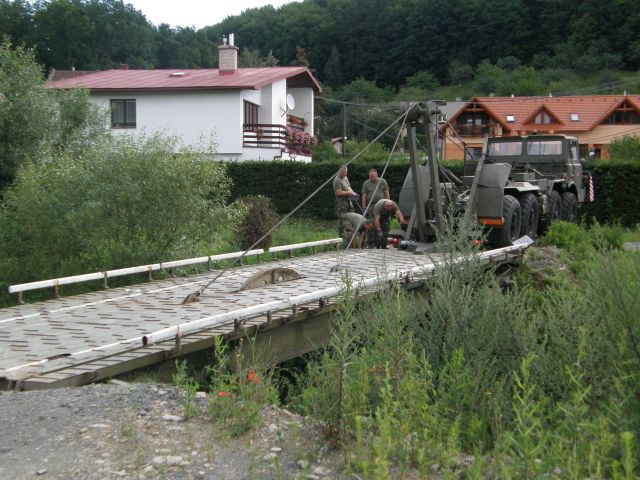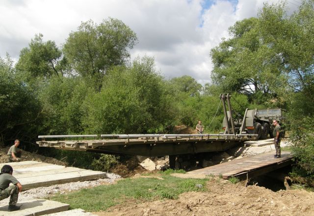 Záujem o ženijnú mostovku prejavil aj starosta neďalekej obce Chmiňany Cyril Miškuf a po rekognoskácií príslušníkmi ženijnej roty mala obec najvhodnejšie podmienky zo všetkých záujemcov na vytvorenie mostného lôžka (spevnenie brehov) a následné položenie mosta.