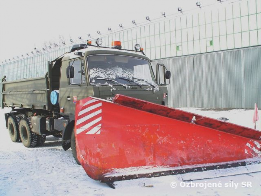 Na základe požiadavky krízového štábu obvodného úradu mesta Prešov nasadili dnes ozbrojené sily SR v popoludňajších hodinách nákladný automobil Tatru T-815 s radlicou na pomoc obyvateľom mesta Prešov, ktoré celý deň bojuje so snehovou kalamitou.