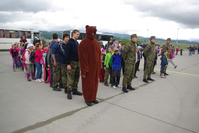Príslušníci vzdušných síl venovali dnešný deň deťom a môžme zhodnotiť, že misia dňa "vyčariť úsmev na ich tváričkách" bola splnená a sme nesmierne radi a vďační, že i napriek nie veľmi príjemnému počasiu, prijali naše pozvanie a prišli medzi nás. Veď napokon každý z nás bol raz jedným z nich ...