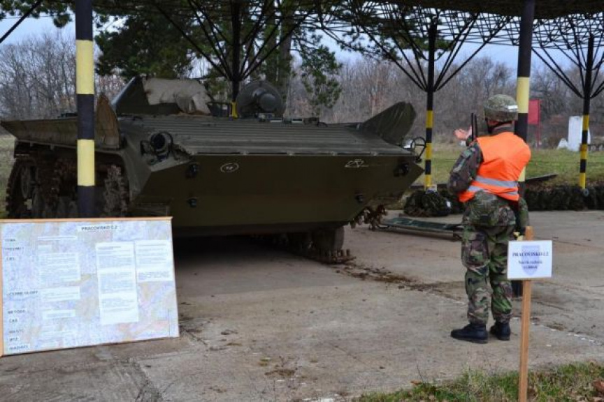 Výcvik vo vedení bojových vozidiel – BVP, na tému „Vedenie techniky v zložitých terénnych podmienkach“, otvoril dňa 25. februára na posádkovom cvičisku Kolíňanský vrch riadiaci zamestnania nadporučík Štefan Štulajte.