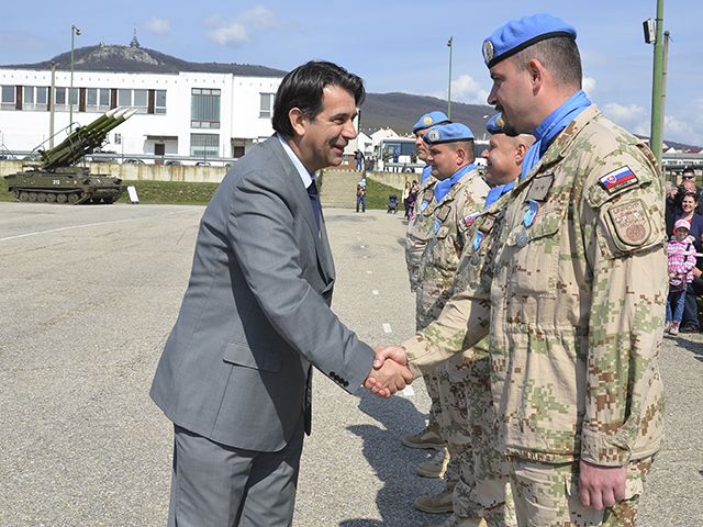 Druhý zástupca NGŠ generálmajor Pavel Macko a cyperský veľvyslanec na Slovensku Marios Kountourides vo svojich príhovoroch poďakovali a ocenili kvalitnú a neľahkú prácu vojakov, ktorí v mierovej operácii na Cypre pôsobili celý jeden rok, vzdialení od svojich rodín, blízkych a známych. Za kvalitné splnenie operačných úloh si 84 profesionálnych vojakov tejto rotácie slávnostne prevzalo medailu za službu v mierových pozorovateľských misiách.