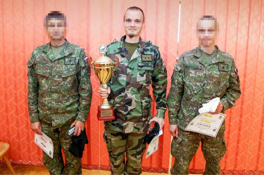 Účastníkovi, ktorý ako prvý dorazil do cieľa, odovzdal zástupca veliteľa Práporu výcviku Martin putovný pohár diaľkového pochodu „Fatra March“.