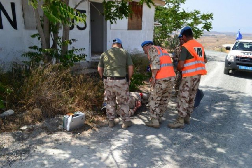 Záverečným bodom inšpekcie bolo preverenie praktických znalostí členov strážnej čaty pri záchrane osôb a zabezpečení priestoru pri dopravnej nehode UN vojakov v priestore zodpovednosti v blázkosti pozície UN 95. V rámci tzv. „Live Ex“ bola nasimulovaná dopravná nehoda príslušníkov 1. strážnej čaty s imitáciou zranení s rôznou závažnosťou. Cieľom cvičenie bolo predvieť zvládnutie spôsobilostí, ktoré sú nevyhnutné pre plnenie operačných úloh. Schopnosť poskytnúť prvú pomoc, zabezpečiť nebezpečný priestor a odoslať hlásenie v stavnovenej forme sú jednými z kľúčových atribútov pre úspešné plnenie úloh v Sektore 4.