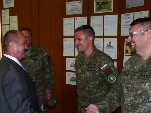 Na pôde oddielu ho privítal náčelník štábu Samohybného delostreleckého oddielu major Roman Bobaľ a veliteľ Ženijnej roty kapitán Ján Bak. Počas úvodného brífingu predstavil major Bobaľ históriu oddielu, poslanie a plnenie hlavných úloh. Minister obrany sa živo zaujímal o personálnu naplnenosť oddielu s dôrazom na delostrelecké odbornosti a otázky zabezpečenia opráv vojenskej techniky, výstroje a stravovania.