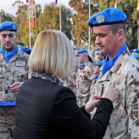 Po príhovore nasledovala najočakávanejšia časť ceremoniálu – slávnostné udelenie medailí a strieborných čísel. Ocenených bolo 68 príslušníkov Sektoru 4 a štyria profesionálny vojaci zo slovenskej ženijnej čaty. K oceneným vojakom sa následne prihovorila p. Elizabeth Spehar, ktorá pripomenula náročné úlohy, ktoré plnia vojaci zo Sektoru 4 v nárazníkovej zóne, ale spomenula aj aktuálne problémy, súvisiace s vyjednávaním o zjednotenie ostrova, ktoré sa priamo dotýkajú aj plnenia operačných úloh v priestore zodpovednosti Sektoru 4. Na záver svojho prejavu zagratulovala vojakom k tomuto oceneniu a poďakovala im za prácu, ktorú odvádzajú v prospech operácie UNFICYP a v prospech udržania mieru na Cypre. Ceremoniál zakončili jednotky Sektoru 4 slávnostným pochodom. Po oficiálnej časti ceremoniálu boli všetci hostia a ocenení vojaci pozvaní na slávnostnú recepciu v priestoroch NCO Mess Hall.