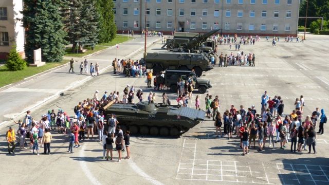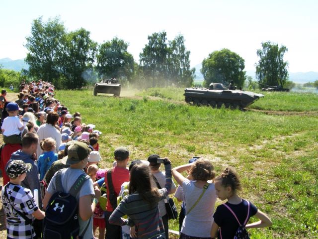 Na takticko-odbornom cvičisku boli vykonané ukážky jázd obrnených vozidiel a zásah hasičov pri požiari vozidla.