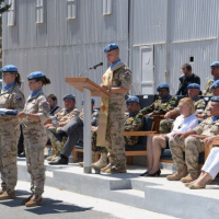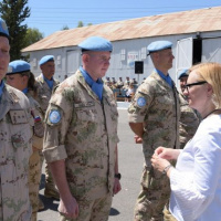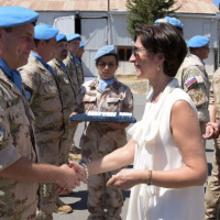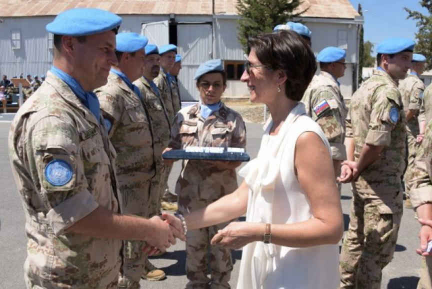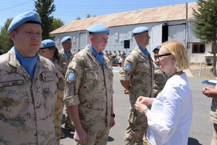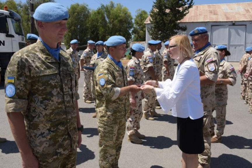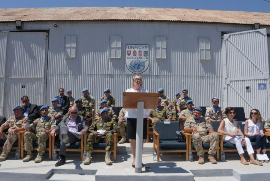 K oceneným vojakom sa prihovorila p. Elizabeth SPEHAR. V príhovore poďakovala všetkým príslušníkom Sektoru 4 za ich profesionálny prístup k plneniu náročných operačných úloh v nárazníkovej zóne v prospech operácie UNFICYP a v prospech udržania mieru a zagratulovala oceneným vojakom k tomuto vyznamenaniu.
