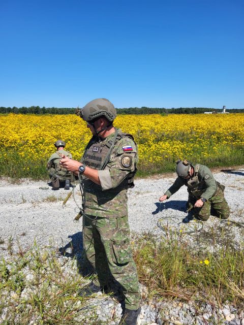 Spoločné cvičenie slovenských EOD špecialistov s kolegami z Národnej gardy štátu Kentucky V dňoch 04.-12.09.2025 sa uskutočnilo medzinárodné EOD cvičenie medzi 905. Centrom Špecializovanej bojovej podpory, 81. Krídlom Sliač a 123. EOD krídlom Národnej Gardy štátu Kentucky. EOD cvičenie prebiehalo v Muscatatuck Urban - tréningovom centre v štáte Indiana, ďalej v 122. stíhacom krídle Národnej gardy štátu Indiana vo Fort Wayne a nakoniec na základni Národnej gardy Vzdušných síl štátu Kentucky. Aktivita pozostávala z troch hlavných častí. Prvá časť prebiehala v Muscatatuck Urban - tréningovom centre v štáte Indiana. Táto časť prebiehala vo forme komplexného EOD cvičenia, pri ktorom šlo najmä o tímové riešenie vysoko profilových incidentov IED a BCMD IED. EOD špecialisti z 905. Centra špecializovanej bojovej podpory a príslušník z 81.k Sliač, boli po príchode rozdelení medzi EOD tímy zo 123. EOD krídla Kentucky. Záverom cvičenia bol komplexný scenár, ktorý bol kombináciou riešenia výbušných hrozieb v domácom a medzinárodnom krízovom manažmente – incident bol mixom práce s rukojemníkom, v stiesnených priestoroch, za znížených svetelných podmienok a zastavanom priestore. Druhá časť prebiehala na pôde 122. stíhacieho krídla Národnej gardy štátu Indiana – na základni Fort Wayne. Po krátkej prehliadke základne sme sa presunuli do hangárov, kde nám boli predstavené bezpečnostné opatrenia pre prácu so stíhacími lietadlami F-16 a muníciou, ktorou sú vyzbrojené, EOD postupy využívané pri riešení prevádzkových problémov spojených so zlyhanou muníciou, núdzové procedúry využívané pri poruchách alebo haváriách v súvislosti s muníciou – a teda EOD činnosti, ktoré bude nutné zabezpečovať aj na našich leteckých prostriedkoch F-16. Tretia časť aktivity bola situovaná na základni Národnej gardy Vzdušných síl štátu Kentucky. Zameraná bola najmä na oboznamovanie sa s prevádzkovým poriadkom základne, výzbrojou, výstrojom tamojších príslušníkov EOD a došlo k porovnávaniu niektorých typov postupov pri výjazde a riešení EOD incidentov vzhľadom na rozličné národné normy pre túto oblasť. Cieľom medzinárodnej spolupráce bola výmena informácií, praktických skúseností a zručností v oblasti EOD na taktickom stupni a zároveň podpora budovania EOD spôsobilosti príslušníkov OS SR zaradených do deklarovaných jednotiek CS 2021. Nadobudnuté skúsenosti budú aplikované pre ďalší rozvoj EOD jednotiek, ako aj pre zabezpečenie kurzov, výcvikov a výučby v 905. cšbp Nováky.
