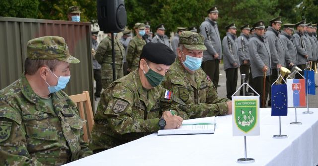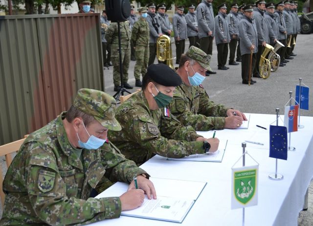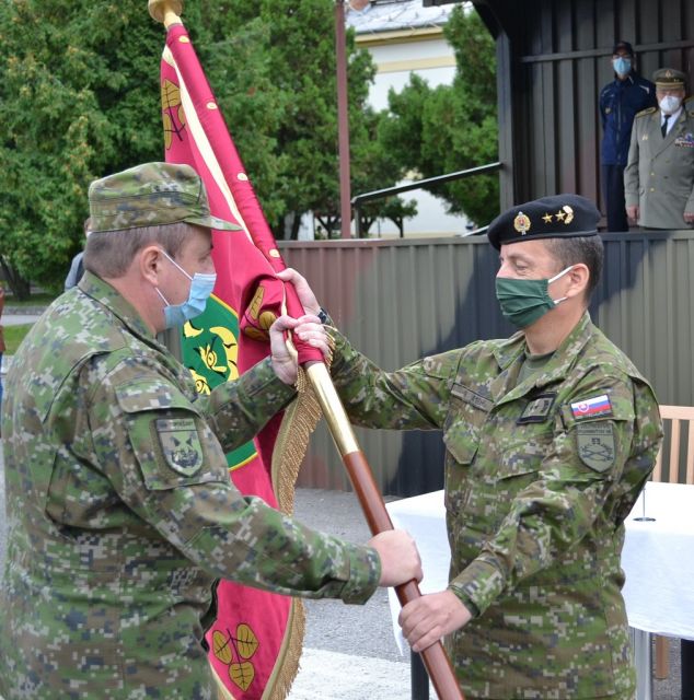 Slávnostným predaním Bojovej zástavy 1. mechanizovanej brigády („1.mb“) odovzdal 31. augusta 2021 funkciu veliteľa 1.mb v Topoľčanoch brigádny generál Ivan Balog prostredníctvom veliteľa Pozemných síl ozbrojených síl Slovenskej republiky generálmajora Ivana Pacha preberajúcemu veliteľovi 1.mb plukovníkovi Alexandrovi Kollárikovi. Na slávnostný ceremoniál, ktorý sa uskutočnil za prítomnosti príslušníkov Veliteľstva 1.mb, práporov a jednotiek v podriadenosti 1.mb v sprievode ich veliteľov, prijali pozvanie aj zástupca náčelníka Generálneho štábu - náčelník štábu Ozbrojených síl Slovenskej republiky („OS SR“) generálmajor Štefan Kovács, bývalý náčelník Generálneho štábu OS SR generálporučík v.v. Peter Vojtek, hlavní funkcionári Veliteľstva pozemných síl, predstavitelia Okresného riaditeľstva policajného zboru, hasičského a záchranného zboru, štátnej správy, ako aj ďalší pozvaní ctení hostia. Po odznení štátnej hymny SR a prečítaní Personálnych rozkazov náčelníka Generálneho štábu OS SR o ustanovení do funkcií, nasledoval symbolický akt odovzdania a prevzatia funkcie, ktorý zúčastnení spečatili svojím podpisom do oficiálnych dokumentov, ako aj zápisom do útvarovej kroniky. Počas dnešného slávnostného ceremoniálu vystúpil pred nastúpené jednotky generálmajor Kovács, ktorý na úvod tlmočil pozdrav od náčelníka Generálneho štábu OS SR generála Daniela Zmeka. Počas svojho príhovoru vyzdvihol význam doterajšej činnosti príslušníkov brigády v Topoľčanoch. “Za posledný rok a pol prvá brigáda plnila rôzne výcvikové úlohy, ale aj neľahké úlohy mierového života v súvislosti s riešením situácie spojenej s pandémiou COVID-19. Aj v týchto ťažkých časoch ste ukázali, že práca je pre Vás všetkých zároveň aj poslaním, a že svojou vysokou úrovňou, odbornou a profesionálnou pripravenosťou dokážete zvládnuť aj tie najnáročnejšie úlohy. Preto chcem poďakovať veliteľovi 1.mb brigádnemu generálovi Ivanovi Balogovi za kus odvedenej práce nielen v prospech u prvej brigády, ale aj v prospech celých pozemných síl. Dňom 1.9.2021 ste ustanovený do funkcie Zástupcu veliteľa pozemných síl a verím, že Vašou dlhoročnou snahou a profesionálnym prístupom k plneniu úloh sa novej funkcie ujmete so cťou.” Novému veliteľovi plukovníkovi Alexandrovi Kollárikovi generálmajor Kovács zaželal, aby na jeho novej veliteľskej funkcii bol naďalej zodpovedný, svedomitý a pracovitý ako doteraz. So svojimi príhovormi ďalej vystúpili aj odchádzajúci a novoustanovený veliteľ brigády. “Dnes sa Vám prihováram posledný krát, ako veliteľ prvej mechanizovanej brigády. Počas dva aj pol roka sme spoločne splnili množstvo náročných úloh, ktoré ste si plnili zodpovedne a svedomito, za čo Vám patrí moja vďaka“. Brigádny generál Balog, ktorý vo funkcii veliteľa 1.mb pôsobil od 1.3.2019, sa na záver svojho vystúpenia rozlúčil so slovami: “Bolo mi cťou veliť 1. mechanizovanej brigáde.” Novoustanovený veliteľ brigády plukovník Kollárik na úvod svojho vystúpenia poďakoval brigádnemu generálovi Ivanovi Balogovi za vytvorenie podmienok a priestoru, počas ktorého mohol brigádu prevziať. “Mojou prioritou v rámci pôsobenia vo funkcii veliteľa brigády bude nielen udržať pretrvávajúci stav, ale zároveň zvyšovať úroveň vycvičenosti veliteľov a štábov, mladých dôstojníkov a poddôstojníkov, ako aj výcvik vojsk” dodal na záver plukovník Kollárik. Pred slávnostným pochodom nastúpených jednotiek, ktorým bol ceremoniál ukončený, vystúpil bývalý náčelník Generálneho štábu OS SR generálporučík v.v. Peter Vojtek - prvý viceprezident Zväzu vojakov SR a predsedu Rady klubu generálov SR, ktorý v mene Zväzu vojakov SR udelil brigádnemu generálovi Balogovi vyznamenanie “HVIEZDA Zväzu vojakov SR”. Slávnostnú atmosféru a dôstojnosť celého aktu odovzdania a prevzatia funkcie veliteľa prvej brigády dodala účasť príslušníkov Čestnej stráže OS SR a Vojenskej hudby OS SR.