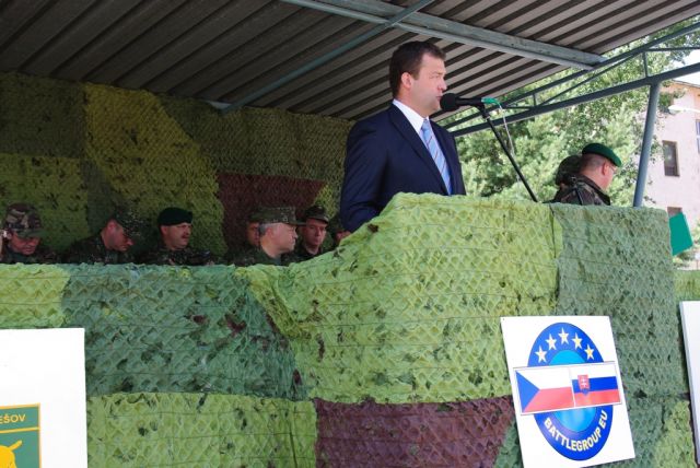 Minister obrany vo svojom príhovore okrem iného povedal: „...myšlienka spoločnej Európy je založená na princípoch vzájomnej spolupráce a solidarity. A tak ako aj ostatné členské štáty Európskej únie aj Slovenská republika využila možnosť a vytvorila bojovú skupinu v rámci medzinárodnej spolupráce. Dnes sa tu stretávame s príslušníkmi prvej spoločnej česko-slovenskej bojovej skupiny, ktorá bude v pohotovosti počas druhého polroka 2009, potom naše ozbrojené sily čaká úloha podieľať sa na spoločnej poľsko-nemecko-lotyšsko-litovsko-slovenskej bojovej skupine pod vedením Poľskej republiky, ktorá bude v pohotovosti v prvom polroku 2010. Je veľmi symbolické, že náš prvý kontingent bojových skupín Európskej únie tvoríme spolu s českými vojakmi. Pokračujeme tak v tradícii spoločných jednotiek, ktoré vytvárame už niekoľko rokov spolu s armádou nám najbližšou“.