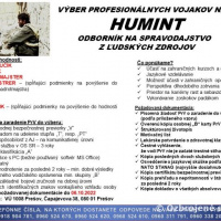 Chceš, alebo potrebuješ zmenu vo svojej odbornosti a stať sa odborníkom HUMINT? Chceš sa stať súčasťou HUMINT jednotky? Chceš byť jej prínosom? Príležitosť máš, nech už si na akejkoľvek funkcií a v ktorejkoľvek posádke na Slovensku.