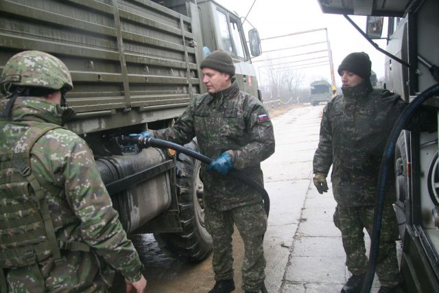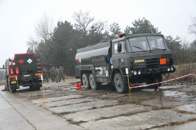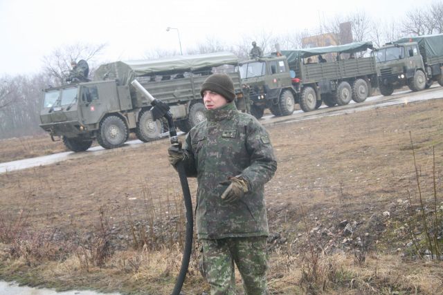 Spoločne s vojakmi dopravnej roty cvičili aj príslušníci roty PHM. Okrem iného zabezpečovali dotankovanie pohonných hmôt v poľných podmienkach počas plnenia úlohy.
