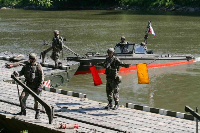 Cvičenie preverilo príslušníkov pontónovej roty pod velením poručíka Jána Smatanu nielen z plnenia odborných úloh ako stavba mostového, prievozového a plavidlového prepraviska, ale aj zo schopnosti jednotky rýchlo a správne reagovať na rôzne druhy incidentov nahraných imitačnou skupinou. A tak 19. mája pred pohľadmi zvedavých domácich pozorujúcich z blízkej hrádze zaujímavú organizovanú činnosť pontonierov vyrástol pontónový most s únosnosťou stanovenou na 20 ton, prievozové prepravisko s únosnosťou 60 ton, kde zaťažkávaciu skúšku zabezpečil Tatrapan a plavidlové prepravisko, kde samohybné obojživelné prostriedky PTS 10 prevážali z brehu na breh vozidlo PV3S.