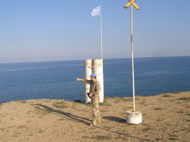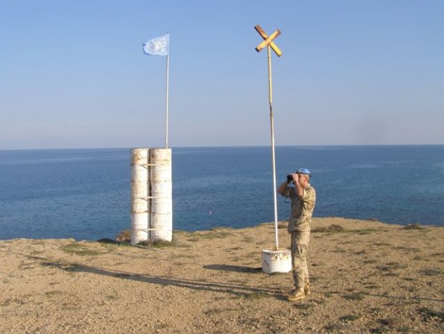 „Sudy, ktoré označujú začiatok umiestnenia bójí už na pobreží mora, zároveň označujú aj miesto patrolovacej pozície. Fotografovanie narušiteľa má svoje pravidlá. Predovšetkým musíme zaznamenať, že naozaj porušil zákaz vstupu. Na jednej z fotiek zreteľne vidno časť sudov OSN a smer plavby. Ak sa plavidlo dostane do tesnej blízkosti k tureckej strane, z neďalekého prístavu vyplávajú dve hliadkovacie lode na overenie prítomnosti daného plavidla. Narušiteľ bez povolenia vie, čo by nasledovalo. Hneď sa otáča a plaví sa do neutrálnych vôd alebo mimo zakázanej zóny”, približuje činnosť na pozícii voj. 2. st. Peter Hricko.