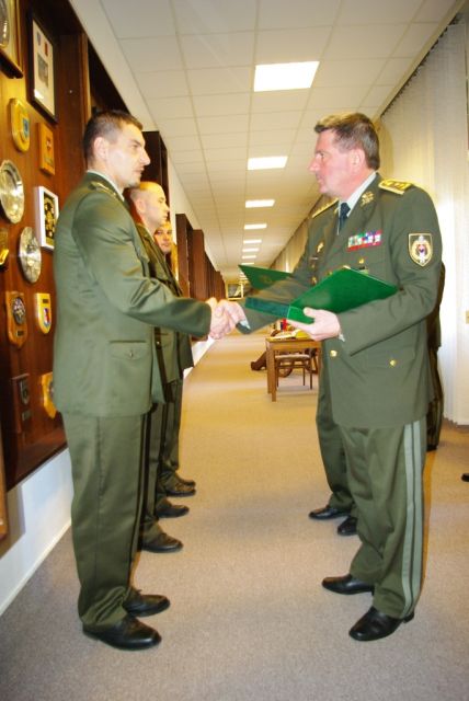 Najlepšieho vojaka mužstva a poddôstojníka pozemných síl za výcvikový rok 2011 osobne ocenil veliteľ pozemných síl. V utorok 20. decembra 2011 na Veliteľstve pozemných síl OS SR v Trenčíne, generálmajor Ján Salaganič za prítomnosti hlavných funkcionárov veliteľstva odovzdal najlepšiemu vojakovi mužstva desiatnikovi Gabrielovi Lovasovi a najlepšiemu poddôstojníkovi rotnému Miroslavovi Ďurkovskému pamätnú plaketu. Generálmajor Salaganič oceneným poďakoval za ich prácu a poprial im veľa úspechov v ďalšej kariére profesionálneho vojaka.