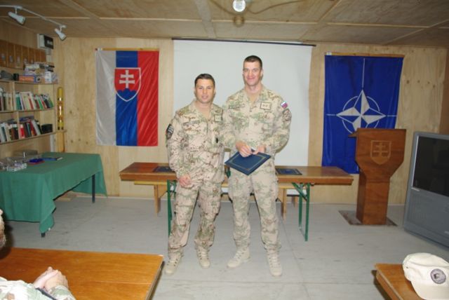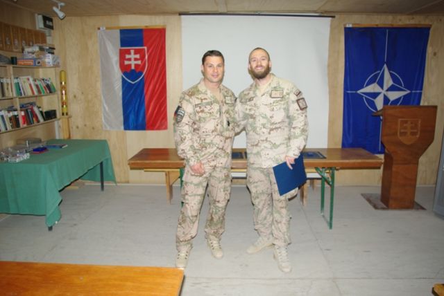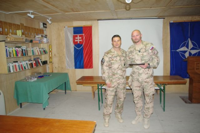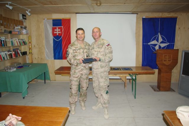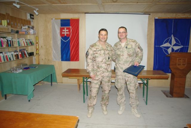 Pri príležitosti ukončenia pôsobenia vo vojenskej operácii ISAF veliaci poddôstojník slovenského kontingentu ISAF, štábny nadrotmajster Rastislav Bodnár, pamätným odznakom vojenského veterána a ďakovným listom ocenil najlepších príslušníkov slovenského kontingentu z radov poddôstojníkov a mužstva. Vybrať najlepších vojakov z vyše stovky odchádzajúcich príslušníkov strážnej jednotky KAF (Kandahar Airfield), multifunkčnej ženijnej roty, strážnej jednotky Tarin Kowt, CSS MAT (Military Advisor Team) Tarin Kowt a EOD (Explosive Ordnance Disposal) nebolo vôbec ľahké, lebo všetci svojou službou potvrdili vysokú profesionalitu, pozitívnu odbornú aj ľudskú stránku svojej osobnosti. O tom svedčia aj slová chvály z úst samotného veliteľa vojenskej základne KAF (Kandahar Airfield) ktoré povedal počas slávnostného ceremoniálu udeľovania medailí za službu vo vojenskej operácii ISAF v Afganistane a svedectvá všetkých zahraničných koaličných partnerov, s ktorými naši vojaci spolupracovali. A ako dodal počas svojho príhovoru veliaci poddôstojník slovenského kontingentu, je hrdý na slovenských vojakov, keď z úst svojich kolegov, veliacich poddôstojníkov partnerských armád, počas neformálnych rozhovorov počúva slová chvály a uznania na adresu našich vojakov.