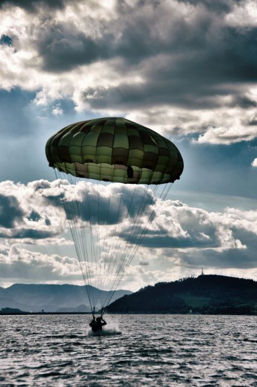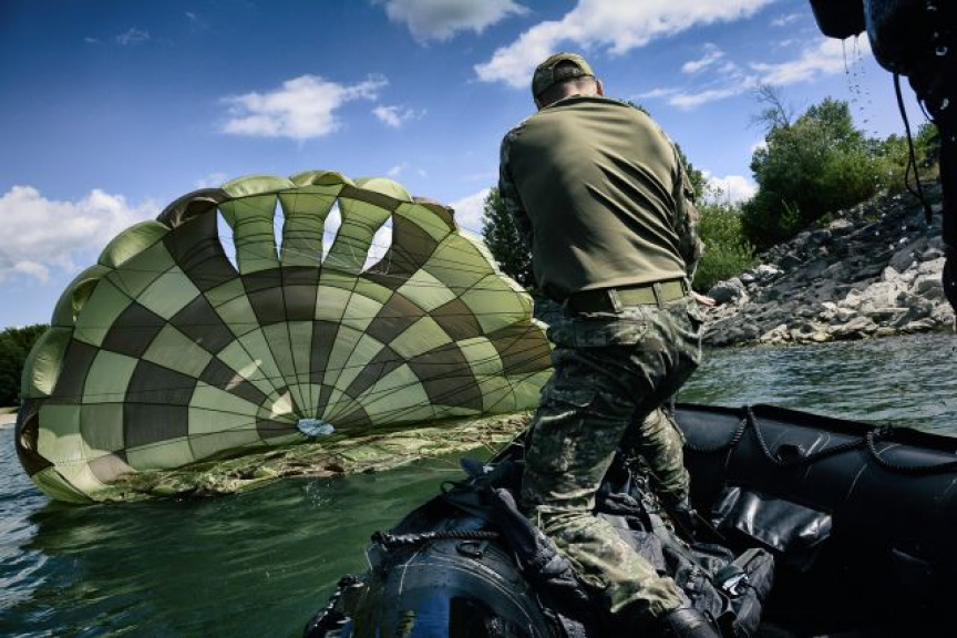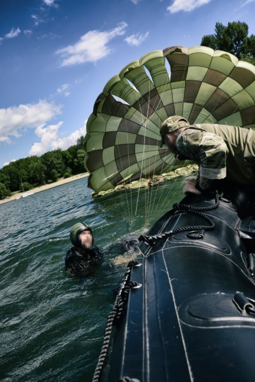 Spoločná výcviková aktivita pozostávala z niekoľkých častí. Ako prvé boli realizované cvičné zoskoky na vodnú hladinu z vrtuľníka z výšky 300 metrov. Činnosť výsadkára je obmedzená vykonaním povinných úkonov určených pre zoskok na vodnú hladinu. Po pristátí vojakov i s padákmi kolegovia vytiahli do člna a transportovali na breh.