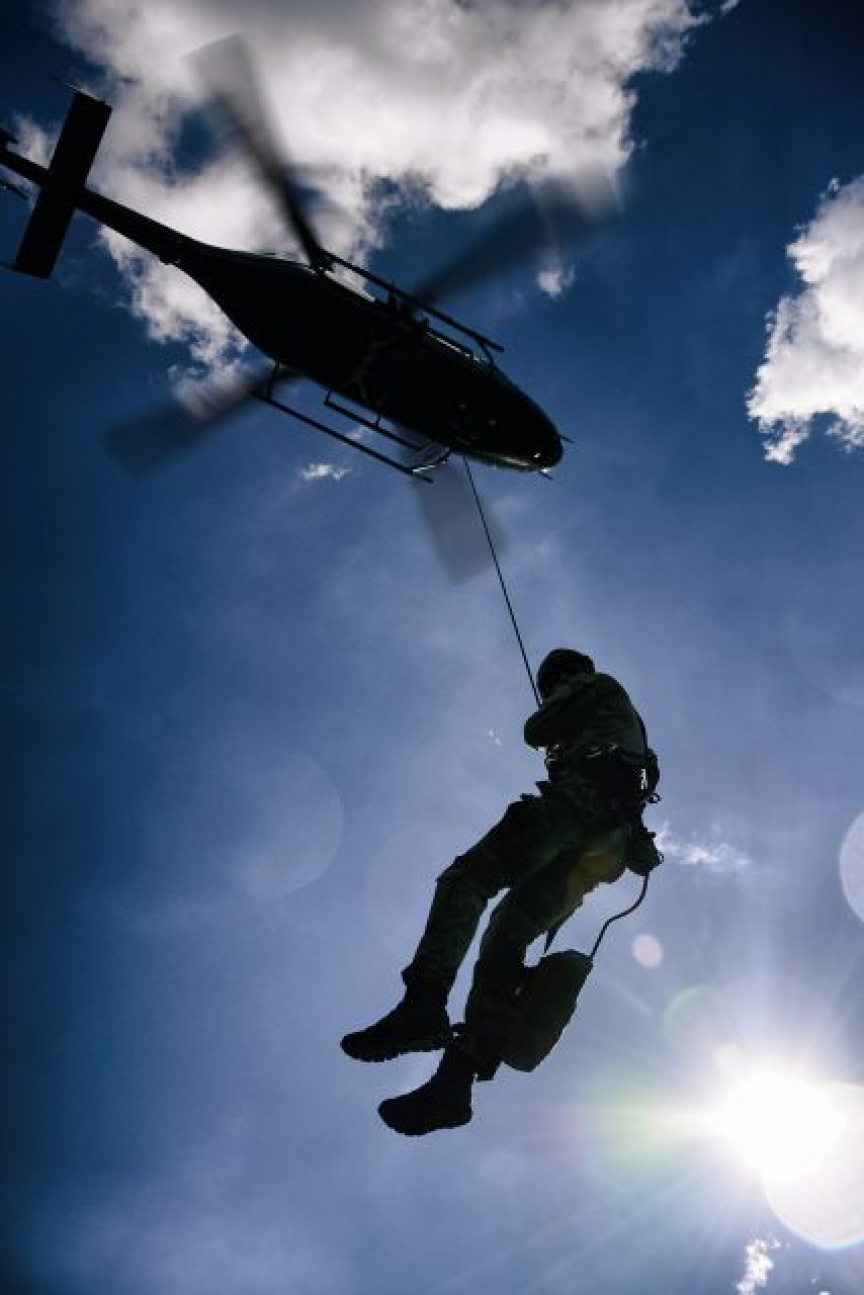 Poslednou z aktivít bolo rezanie lana pri zlaňovaní z vrtuľníka Mi-171 na vodnú hladinu, pričom pri každom „vysadení“ do vody si ostatní členovia na člnoch precvičovali rýchle manévrovanie a presnú jazdu k svojim kolegom vo vode. Počas čakania na vrtuľník s extrakčným lanom si členovia „obojživelnej skupiny“ precvičili aj taktický výsadok z idúceho člna.