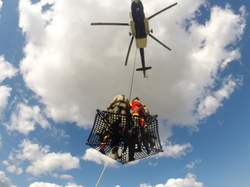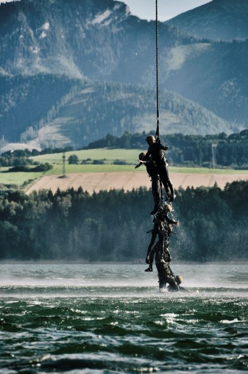Účastníci výcviku absolvovali i skok z vrtuľníka Mi-171 z prízemného letu z výšky 7 metrov na vodnú hladinu. Z vody boli vyzdvihnutí extrakčným lanom a vzdušnou cestou prepravení do bezpečného priestoru.