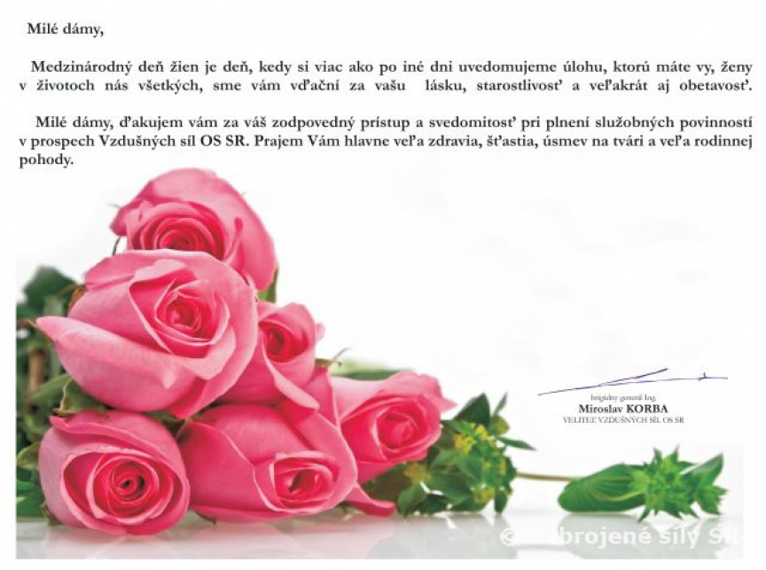Pozdrav veliteľa VzS k Medzinárodnému dňu žien