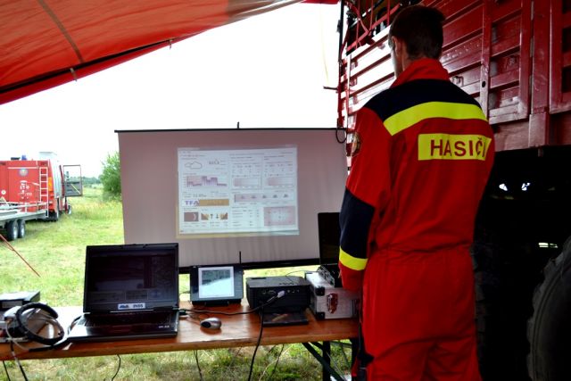 Posádka vrtuľníka Mi-17 LPZS (v zložení mjr. Marián Bodnár, npor. Vladimír Harvan, rtn. Peter Rogos, ppráp. Dušan Petrula, npor. Štefan Veliký) vykonala pomocou termovíznej a televíznej kamery optoelektronického systému COMPASS prvotný prieskum požiariska s cieľom určiť polohu, priestor a rozsah požiaru, počet a pozície zasahujúcich hasičských jednotiek a zasahujúcej techniky. Po vykonaní prieskumu a nasnímaní potrebných televíznych, termovíznych a mapových záznamov, bol pomocou mobilnej prenosnej vyhodnocovacej stanice DVDS vykonaný debriefing a prezentácia nasnímaných záznamov pre členov riadiaceho štábu na stanovisku geografickej a informačnej podpory veliteľa modulu leteckého hasenia.