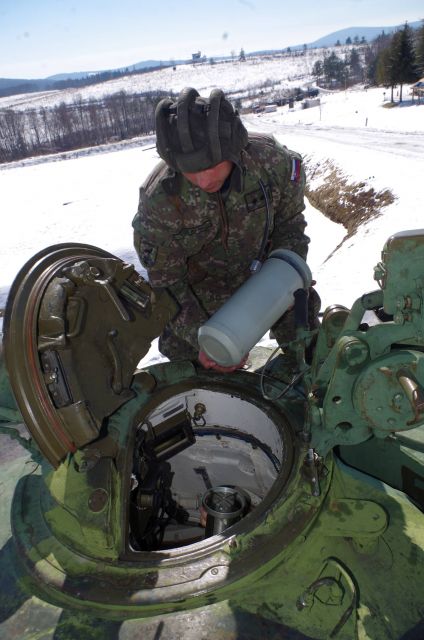 Major Horváth spoločne s veliteľom tankovej roty kapitánom Matúšom Gecejom približujú, že vo výcvikovom priestore pod Vihorlatom si tankisti užili napriek jarnému dátumu doslova zimné podmienky. Museli sa vysporiadať so snehovou fujavicou, hmlami, ktoré často prerušovali zamestnanie a najmä s technickými problémami tankov, ktoré si trebišovčania prebrali v Martine, v tamojšej základni výcviku a mobilizačného doplňovania pozemných síl. „Postupne nám na tankoch odišli brzdno- vratné zariadenia a preto sme nemohli z bezpečnostných dôvodov uskutočniť cvičenie so všetkými strelcami tankov. Ďalší plnili úlohy s vložnou zbraňou,“ hovorí major Horváth. Veliteľ tankovej roty dodáva, že vo výcvikovom priestore tankisti úspešne zvládli vodenie bojových vozidiel a absolvovali aj výcvik s výbušným odmínovačom, čo už roky necvičili. A streľbu s vložnou zbraňou absolvovali celé osádky tankov. Okrem strelcov aj vodiči a velitelia tankov. Medzi strelcami, ktorým stav techniky ešte umožnil uskutočniť streľby plným 125 mm kalibrom boli aj dvaja nováčikovia: desiatnici Radovan Onder a Tomáš Kus. „Vo vnútri tanku ten výstrel až tak nepočuť ako vonku. Ale trochu ho cítiť. Tankom trochu zatriaslo. Išlo to dobre, trocha nervozity pred výstrelom bolo z počasia. Boli sme pripravení, no museli sme počkať, kým neustúpi hmla. Chvíľu zasa snežilo, nebolo dobre vidieť terče,“ približuje svoj prvý výstrel plným kalibrom strelec desiatnik Kus.