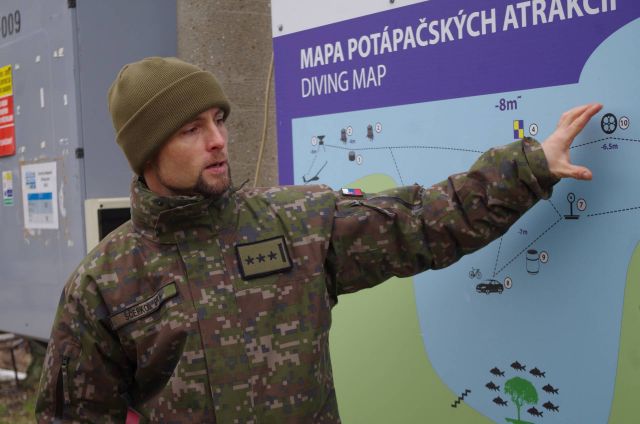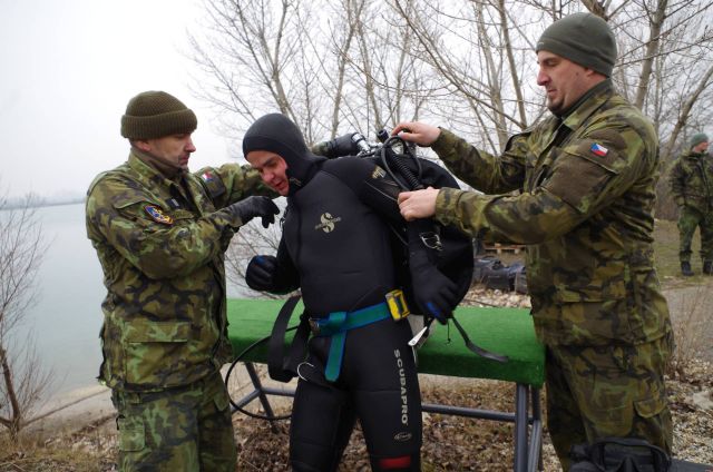 Pri svojej práci musia eliminovať najväčšie riziká pod vodnou hladinou. Zvládnuť prácu s navijakom. Lebo lano dokáže byť veľmi nebezpečné. Môžu sa do neho zamotať. Poručík Jakub Hynek, veliteľ ženijnej čaty ženijného práporu Běchyne si spoločný výcvik pochvaľuje. Z českej strany sa ho zúčastňujú takmer dve desiatky potápačov zo ženijných práporov Běchyne a Olomouc, zo slovenskej potápači seredského ženijného práporu zo Serede a Michaloviec. Práporčík Michal Strejc, je skúšobný komisár Armády ČR pre potápanie, hlavný odborník v AČR pre túto oblasť: „ Pre našich potápačov je spoločný výcvik so slovenskými kolegami vítanou príležitosťou na získanie nových skúseností. Hlavne z práce s navijakom pod vodnou hladinou. Z hľadiska bezpečnosti je potrebné, aby potápač pod vodu nenosil žiadne zbytočné veci. Mohli by zapríčiniť nehodu, mimoriadnu udalosť a ohroziť bezpečnosť, ale aj život potápača. Napríklad hadica navyše sa môže zapliesť do nejakého koreňa. Cvičíme úlohy zimného potápania, bez ohľadu na to, či je nad nami ľad. Používame tie isté postupy. Budem radi, keď naši slovenskí kolegovia zavítajú cvičiť aj do našich lokalít, najmä na severnej Morave.“