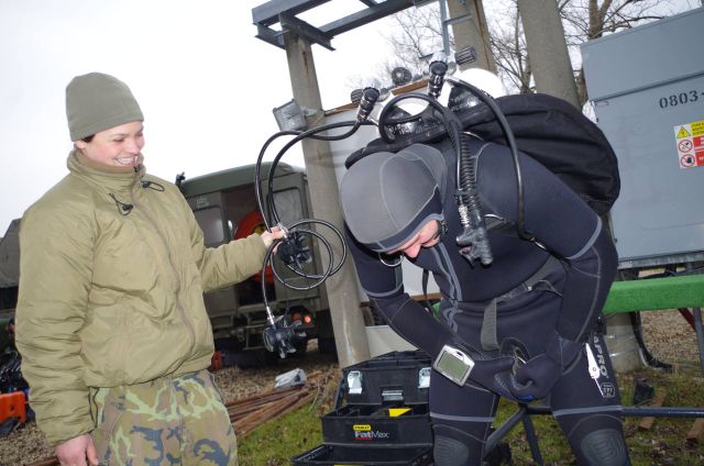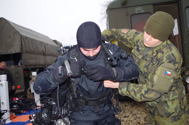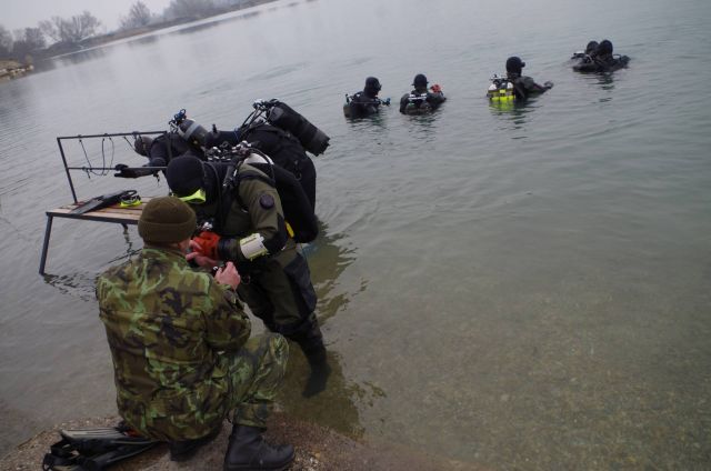 Predposledný januárový týždeň sa uskutočnil v priestoroch ženijného práporu Sereď a cvičiska Čierna Voda spoločný výcvik slovenských a českých potápačov. Veliaci poddôstojník ženijno-prieskumnej čaty rotmajster Michal Ščepko, ktorý je skúšobným komisárom ženijných špecializácií pre odbornosť potápač v OS SR konštatuje, že hlavným cieľom spoločného výcviku je výmena skúseností, zručností a postupov pri riešení vojenských činností v uzatvorenom prostredí pod vodnou hladinou.
