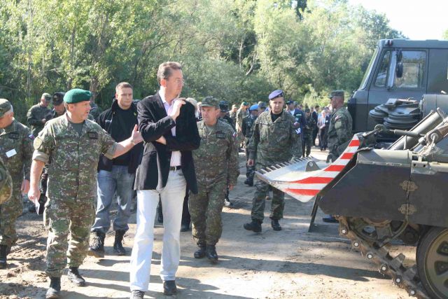 Hostia si prezreli dynamické ukážky činnosti mnohonárodného práporu. Prezentovali pripravenosť práporu na plnenie ženijných odborných úloh pri riešení krízových situácií. Následne si prezreli ukážky výstroja a výzbroje slovenských ozbrojených síl, ale aj hasičského a záchranného zboru a civilnej ochrany. Napríklad kontrolné chemické laboratórium CO.