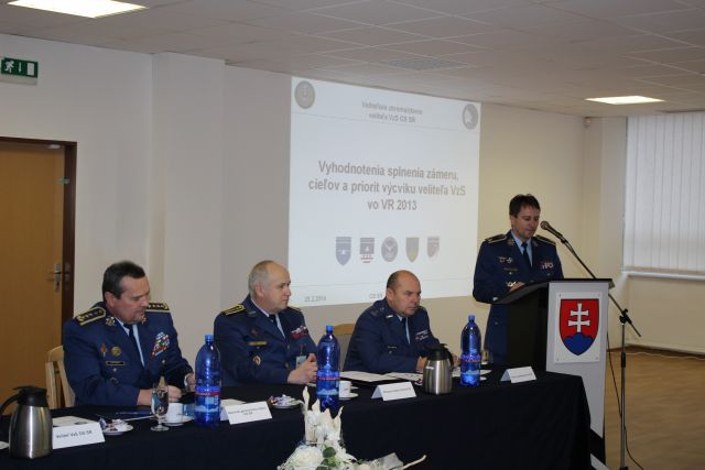 Cieľom dnešného zamestnania bolo za účasti ctených hostí, hlavných funkcionárov veliteľstva vzdušných síl a podriadených zväzkov detailnejšie zhodnotiť plnenie hlavných úloh vzdušných síl podľa jednotlivých priorít a rozhodujúcich úloh stanovených na rok 2013. Oficiálnu časť veliteľského zhromaždenia otvoril brigádny generál Miroslav Korba, ktorý okrem iného uviedol „Vzdušné sily aj v hodnotenom roku 2013, v zmysle národnej legislatívy a medzinárodných záväzkov Slovenskej republiky, plnili úlohy zabezpečenia nepretržitej ochrany vzdušného priestoru Aliancie v rámci integrovaného systému protivzdušnej obrany NATINAMDS rovnako, ako aj úlohy spojené s leteckou pátracou a záchrannou službou“.