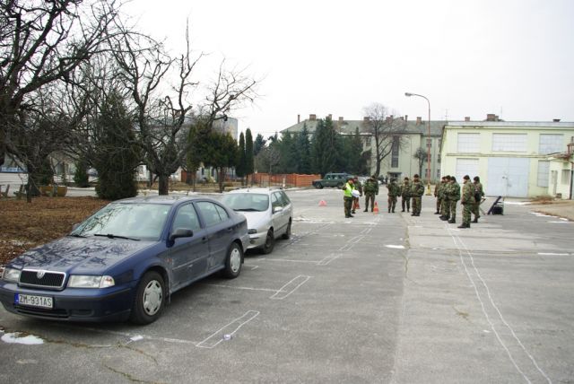 S cieľom pripraviť vojenských policajtov na praktické zvládnutie zručností a postupov, ktoré si vyžadujú udalosti v cestnej premávke boli realizované ukážky s vysvetlením na dvoch pracoviskách. Prvé simulovalo dopravnú nehodu za účasti osobného motorového vozidla s cyklistom vo vojenskom objekte a druhé pracovisko simulovalo škodovú udalosť medzi dvoma osobnými motorovými vozidlami na mimo mestskej komunikácii. Okrem odskúšania spôsobov vhodnej topografickej a fotografickej dokumentácie sa podarilo navodiť reálne situácie, kde sa môžu vyskytnúť stopy biologického, defektoskopického, trasologického a iného charakteru /napr. vyosenie sedadla bicykla/. Po kruhovom absolvovaní pracovísk nasledovala prezentácia na učebni so zameraním na správne vyplňovanie tlačív, procesné postupy v trestnom a v priestupkovom konaní a možnosti znaleckého skúmania.ň